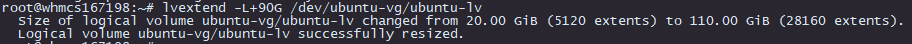 Puede darse la casuística de que no nos permita añadir el espacio en GB seleccionado. En ese caso, añadiremos en GB tamaño agregado anteriormente, restando una unidad, y añadiríamos los megabytes restantes utilizando el mismo comando que en el paso anterior "lvextend -L+Xm /dev/xxxxxx/xxxxxx"